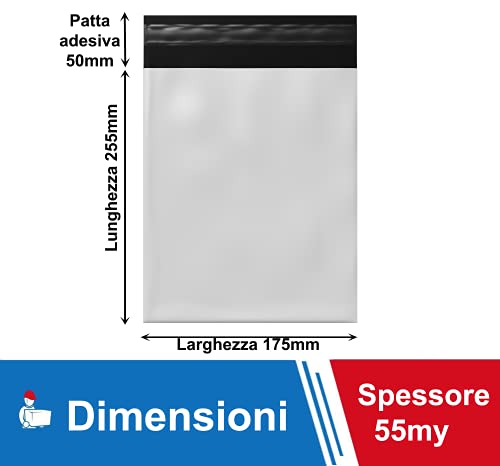 IMBALLAGGI 2000-800 Buste per Spedizione in Plastica 175x255+50mm, Materiale COEX Impermeabile e Antistrappo, con Patta Adesiva, Buste Flyer Bianche per Corrieri e Spedizioni