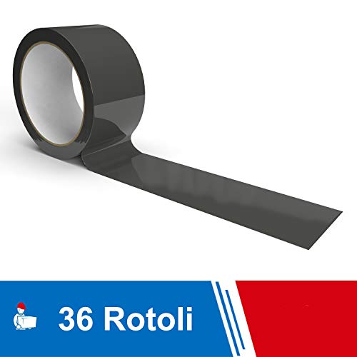 IMBALLAGGI 2000 - Nastro Adesivo Pacchi Nero in Polipropilene 36Pz 5cm x 66Mt x 76 mm, Nastro Adesivo Colorato Resistente a Strappo Silenzioso, Nastro Imballaggio per Spedizioni, Scatoloni e Trasloco