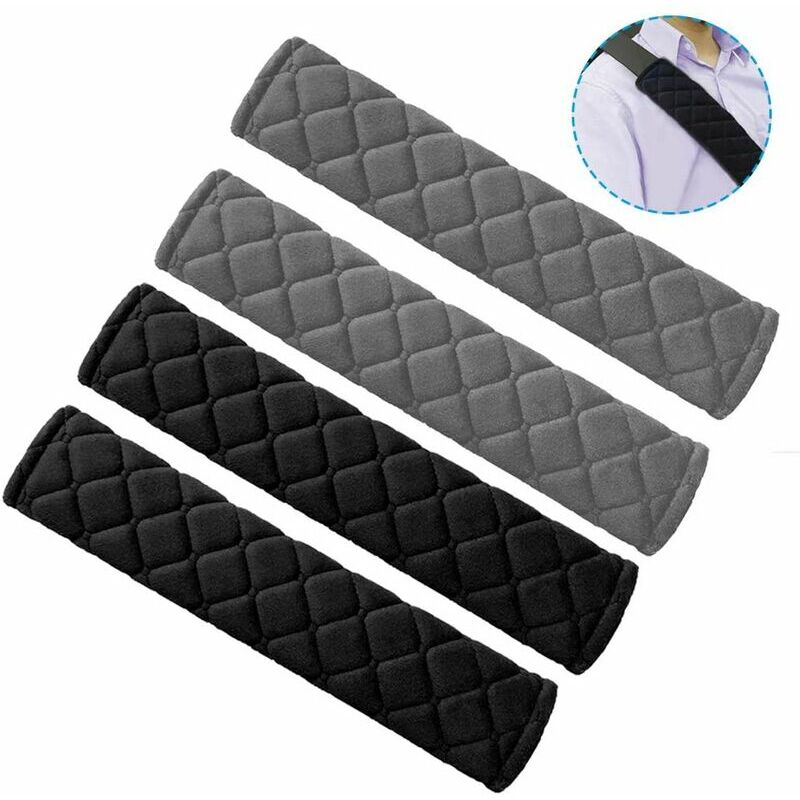 Morbido e confortevole: questi morbidi cuscinetti per cintura di sicurezza sono realizzati in cotone misto di alta qualità, hanno una morbida superficie in velluto. Offri un'esperienza più sicura e confortevole. Funzione: oggetti rimovibili, lavabili, molto pratici per la tua vita quotidiana. Ti aiuta a sentirti più a tuo agio quando usi le cinture di sicurezza durante la guida, impedisce alla cintura di sfregare il collo o la clavicola nel modo sbagliato. Ampia applicazione: può essere utilizzata per cinture di sicurezza, cintura addominale, borsa fotografica, borsa per pannolini, sacca da golf, valigie, borsa per laptop, borsa a tracolla e altre cose che puoi immaginare. Facile da usare: l'imbottitura della cintura dell'auto ha un adesivo magico resistente nella parte inferiore, basta avvolgere l'imbottitura della cintura attorno al sedile cinghia della cintura o tracolla della borsa, quindi attaccalo e infilalo nella posizione che preferisci. Pratico: disponibile in nero e grigio