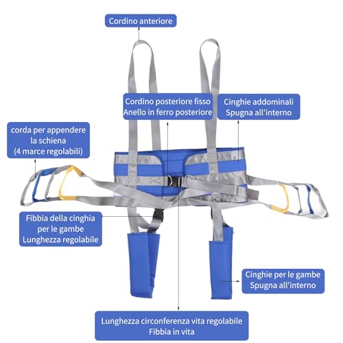 【 Altezza regolabile a 4 velocità 】 Il cordino sul retro dispone di quattro marce e l'altezza può essere regolata in base alle necessità, con attenzione e flessibilità. Progettato per sollevare, sollevare e trasferire i pazienti da qualsiasi posizione. Le cinghie multiuso che supportano efficacemente la riabilitazione di persone con mobilità ridotta, offrono accesso al bagno e alla toilette.