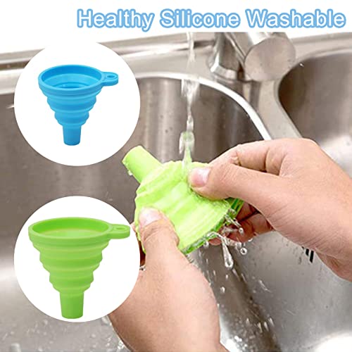 Imbuto Pieghevole in Silicone,Imbuto Pieghevole,Multifunzione Portatile Pieghevole Imbuto ad Retrattile,Per Trasferimento Bottiglie Acqua Stretta e Larga e Liquido (Verde e Blu)