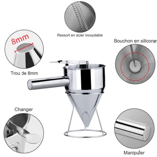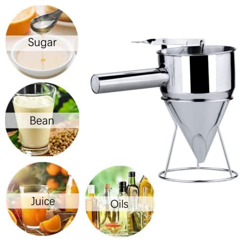 Imbuto a Pistone in Acciaio Inox, Imbuto a Pistone, 1,2 Litri Lmbuto per Pasticceria, Imbuto Dosatore con Supporto per la Casa per La Cucina di Casa Panetteria