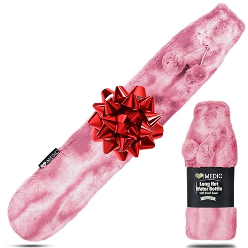IMedic 2L Borsa Acqua Calda Lunga - Borsa Acqua Calda Collo Cervicale Ricoperta da una Fodera di Lusso Realizzata in Pile Super Morbido o Maglia Comoda - Finta Pelliccia Rosa
