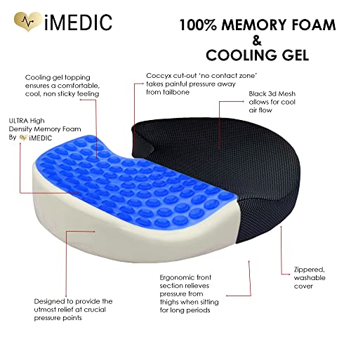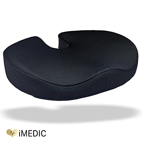 IMedic Cuscino Memory Foam con Gel Rinfrescante - Cuscino per Sedia Ufficio o Cuscino da Viaggio per Auto con Ritaglio per Coccige - Cuscino per Sciatica, Coccige, Auto, Yoga (Maglia 3D Nera)