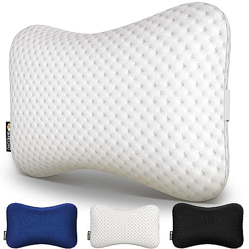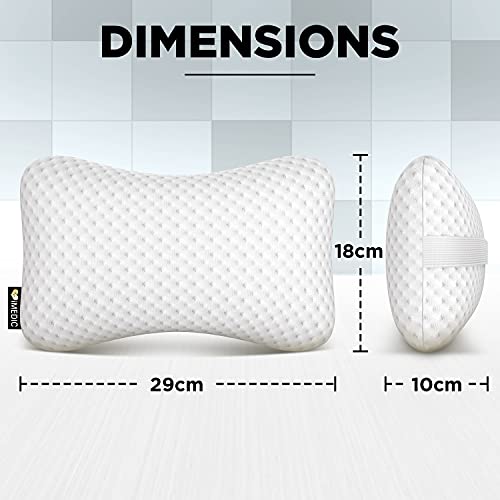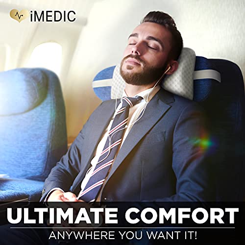 IMedic Cuscino da Viaggio in Memory Foam - Cuscino Memory Foam per Collo e Testa - Cuscino Memory Poggiatesta - 1x Bianco Jacquard Elegante