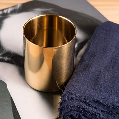 IMEEA 2 pezzi in acciaio inox portapenne porta pennelli make-up porta cancelleria da scrivania (oro)