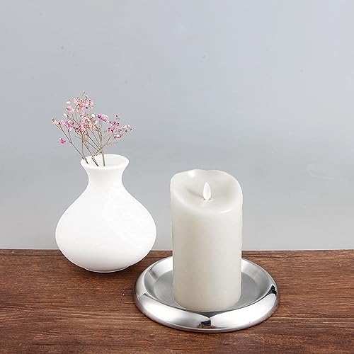 IMEEA Portacandele rotondo SUS304 in acciaio inox per candelabri a colonna in metallo, set di 2 sottobicchieri (argento)