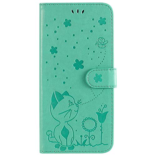 IMEIKONST Compatibile con Galaxy A21S Custodia a Libro in Premium Pelle PU 3D Goffratura Design Flip Portafoglio Magnetic Stand Protettiva Caso per Samsung Galaxy A21S Cat Green KT