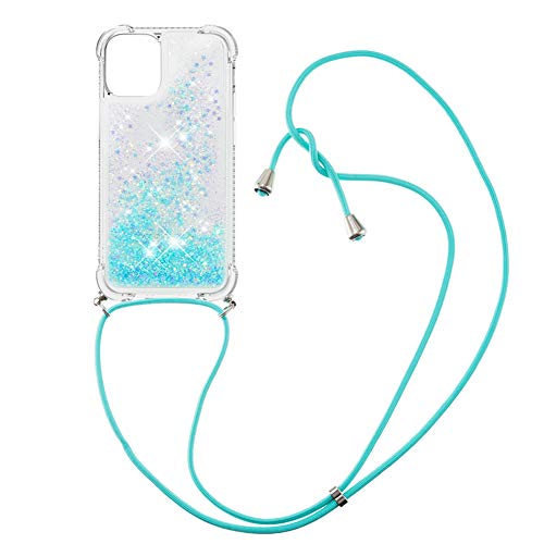 IMEIKONST Compatibile con iPhone 12 PRO Max Custodia con Cordino, Bling Liquido Cover TPU Protettivo Morbido Coulisse Quicksand Cellulare Compatibile con iPhone 12 PRO Max. Star Blue GS