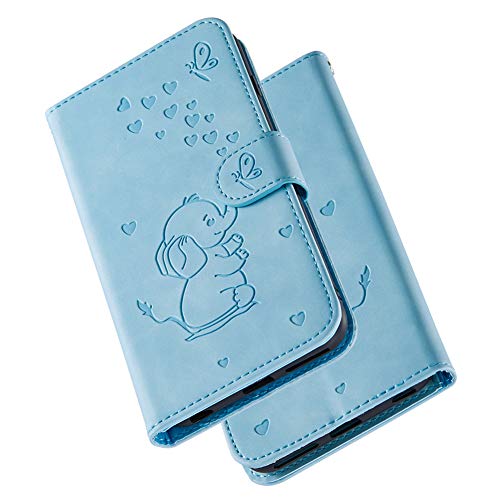 IMEIKONST Custodia Compatibile con Samsung Galaxy A50, Cute Elefantino Libro in Pelle PU Portafoglio Chiusura Magnetica Protettiva Flip Cover per Samsung A50S / A30S. Elefante Blu XFX