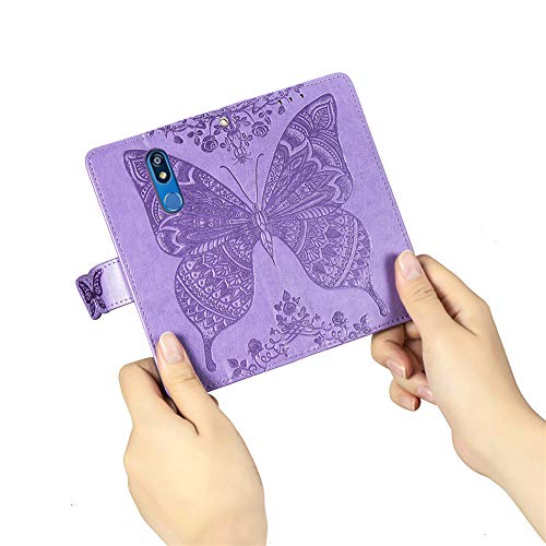 IMEIKONST LG K40 Custodia Elegant Embossed Slot Carte Bookstyle Wallet Pelle PU Durable Magnetica Clasp Flip Protettiva Kickstand Caso per LG K40 Butterfly Lavender SD