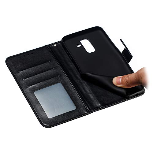 IMEIKONST A9 Star Lite 2018 Custodia Embossed Premium Phone Cover a Libro in Pelle PU Flip Portafoglio Holder Protettiva Magnetic Stand Caso per Samsung Galaxy A6 Plus 2018 Mandala Black LD