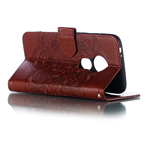 IMEIKONST Moto E5 Play Go Custodia Embossed Premium Phone Cover a Libro in Pelle PU Flip Portafoglio Holder Protettiva Magnetic Stand Caso per Motorola Moto E5 Play Go Mandala Brown LD