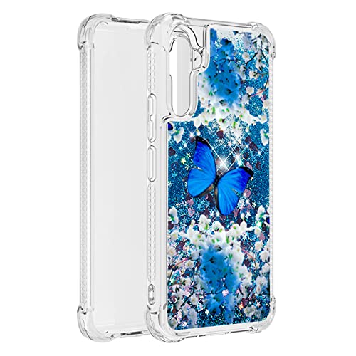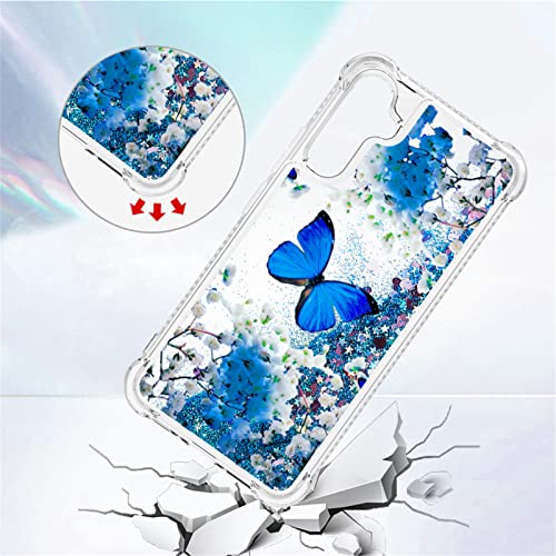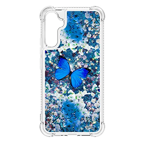 IMEIKONST Custodia per Samsung Galaxy A34 5G, Trasparente Glitter Rigida Antiurto Brillantini Glitterata Ragazze Silicone TPU Bumper Protettiva Cover per Samsung A34 5G. Bling Blue Butterfly YB