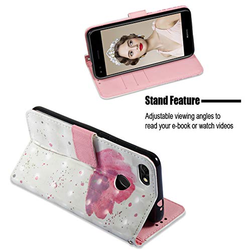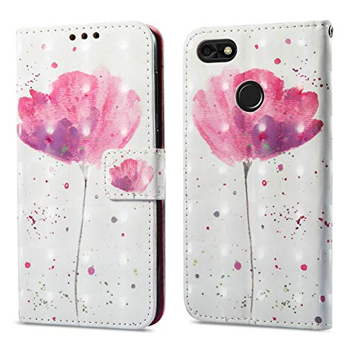 IMEIKONST Enjoy 7 Custodia 3D Creativo Design Pelle PU Flip Bookstyle Carte Slot Holder Wallet Magnetica Protettiva Cover Stand Caso per Huawei Y6 PRO 2017 / P9 Lite Mini 3D A Red Flower YB