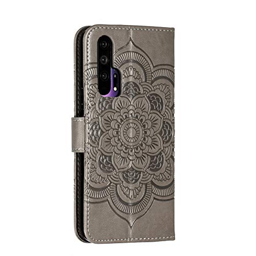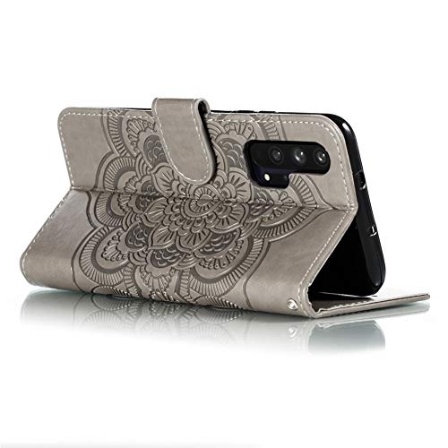 IMEIKONST Huawei Honor 20 PRO Custodia Embossed Premium Phone Cover a Libro in Pelle PU Flip Portafoglio Holder Protettiva Magnetic Stand Caso per Huawei Honor 20 PRO Mandala Grey LD