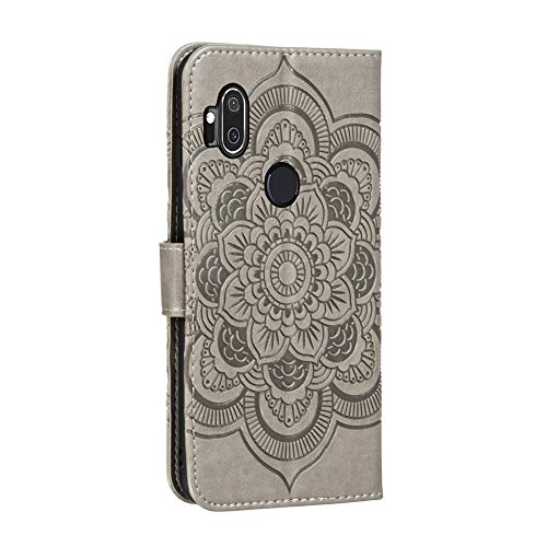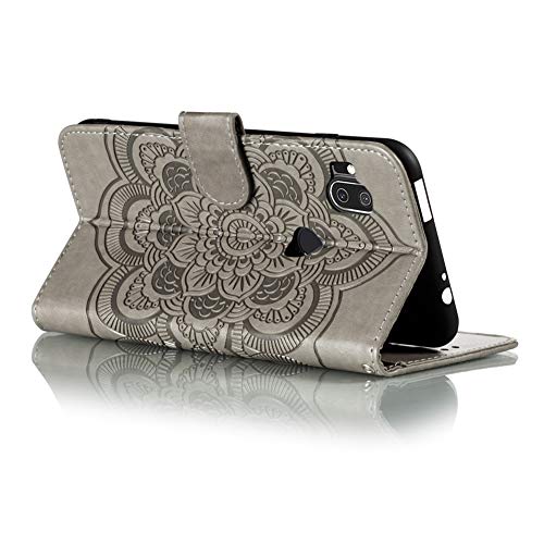 IMEIKONST Moto One Hyper Custodia Embossed Premium Phone Cover a Libro in Pelle PU Flip Portafoglio Holder Protettiva Magnetic Stand Caso per Motorola Moto One Hyper Mandala Grey LD