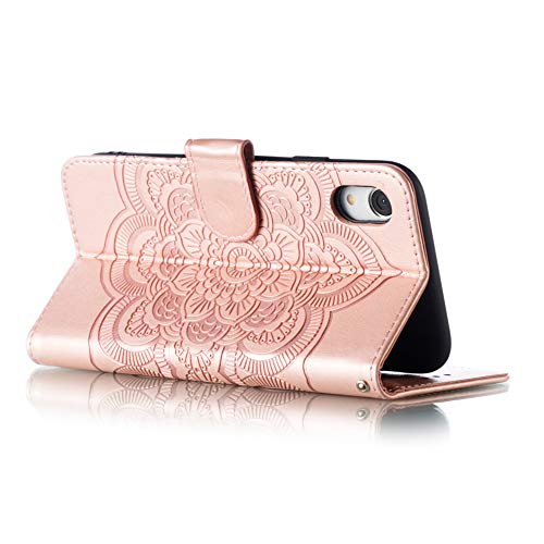 IMEIKONST iPhone XR Custodia Embossed Premium Phone Cover a Libro in Pelle PU Flip Portafoglio Holder Protettiva Magnetic Stand Caso per iPhone XR Mandala Rose Gold LD