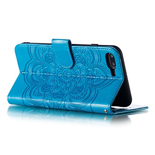 IMEIKONST iPhone 8+ Custodia Embossed Premium Phone Cover a Libro in Pelle PU Flip Portafoglio Holder Protettiva Magnetic Stand Caso per iPhone 8 Plus / 7 Plus Mandala Blue LD