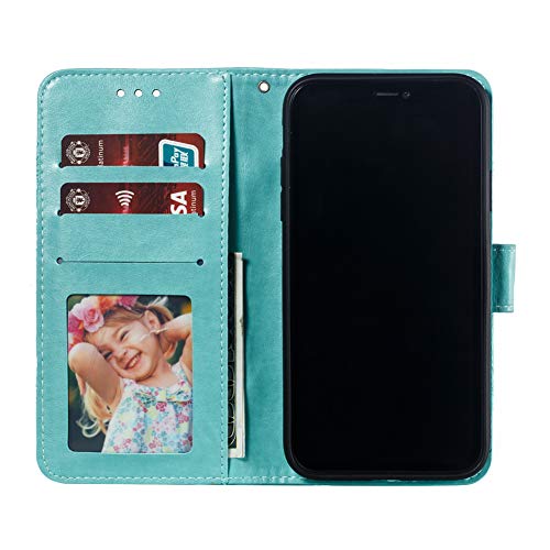 IMEIKONST iPhone XR Custodia Embossed Premium Phone Cover a Libro in Pelle PU Flip Portafoglio Holder Protettiva Magnetic Stand Caso per iPhone XR Mandala Green LD