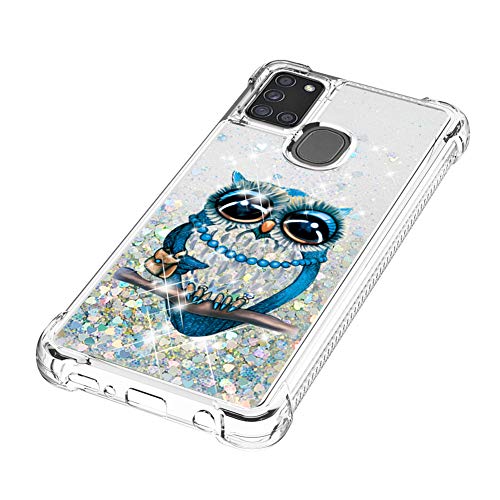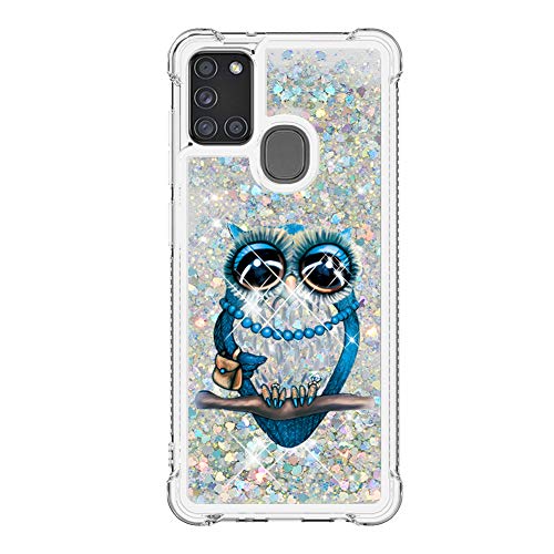 IMEIKONST Liquido Case per Galaxy A21S, Bello Glitter Brillante Floating Sabbie Mobili Custodia Trasparente Silicone TPU Antiurto Protettivo Copertura per Samsung Galaxy A21S Bling Owl YB