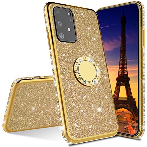 IMEIKONST Samsung A41 - Cover glitterata lucida, con brillantini, girevole, anello in gel di silicone morbido e TPU, antiurto, per Samsung Galaxy A41, Bling Golden KDL