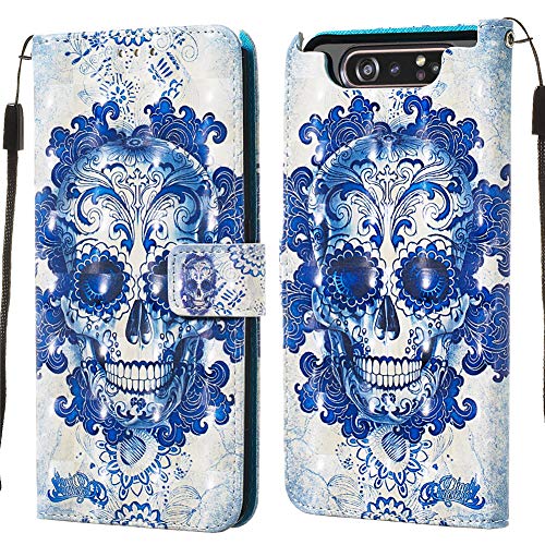 IMEIKONST Samsung A80 Custodia 3D Creativo Design Pelle PU Flip Bookstyle Carte Slot Holder Wallet Magnetica Protettiva Cover Stand Caso per Samsung Galaxy A80 3D Blue Skull YB