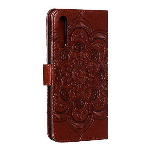 IMEIKONST Samsung A70 Custodia Mandala Embossed Premium Phone Cover a Libro in Pelle PU Flip Portafoglio Holder Protettiva Magnetic Stand Caso per Samsung Galaxy A70 Mandala Brown LD
