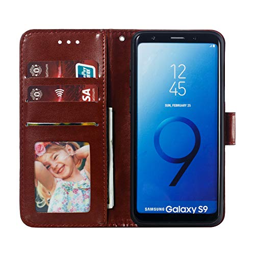 IMEIKONST Samsung Galaxy S9 Custodia Embossed Premium Phone Cover a Libro in Pelle PU Flip Portafoglio Holder Protettiva Magnetic Stand Caso per Samsung Galaxy S9 Mandala Brown LD