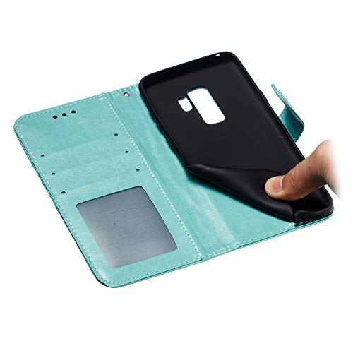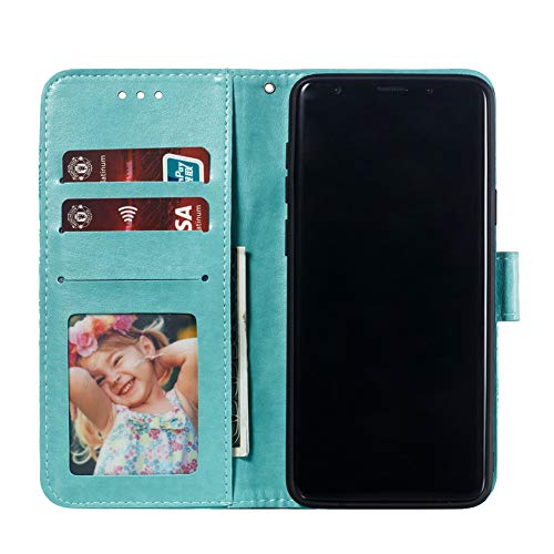IMEIKONST Samsung Galaxy S9 Plus Custodia Embossed Premium Phone Cover a Libro in Pelle PU Flip Portafoglio Holder Protettiva Magnetic Stand Caso per Samsung Galaxy S9 Plus Mandala Green LD