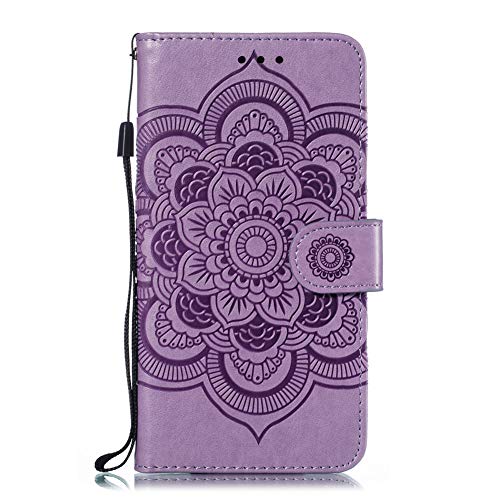 IMEIKONST Xiaomi Mi A2 Custodia Embossed Premium Phone Cover a Libro in Pelle PU Flip Portafoglio Holder Protettiva Magnetic Stand Caso per Xiaomi Mi 6X Mandala Purple LD