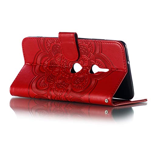 IMEIKONST Sony Xperia XZ3 Custodia Embossed Premium Phone Cover a Libro in Pelle PU Flip Portafoglio Holder Protettiva Magnetic Stand Caso per Sony Xperia XZ3 Mandala Red LD