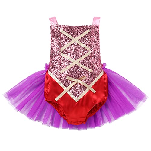 Design: costume da strega Winifred Mary Sarah sanderson per neonata, spalline sottili e paillettes, adorabile e dolce. Schienale con cinturini allacciati può essere legato con un fiocco sul retro. Ricoperto con paillettes lucide e cinturini incrociati decorativi. Apertura gamba elasticizzata. Progettato con tutù di tulle per creare un effetto soffice. Completa il look da strega abbinandolo a una mantella in tinta unita. Ideale come regalo di Halloween per il tuo piccolo.