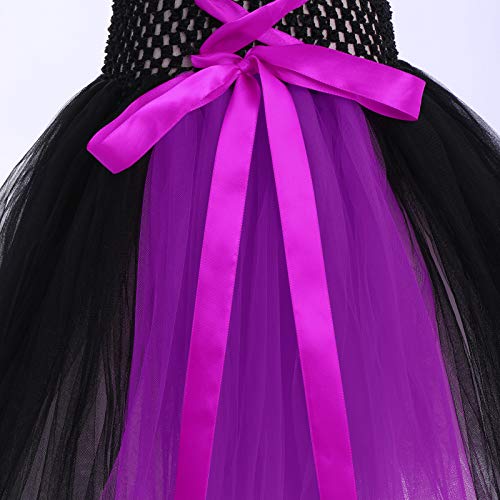 IMEKIS - Costume da principessa Maleficent per bambina, in tulle fatto a mano, con corno e ali Lilla 3 10-12 Anni