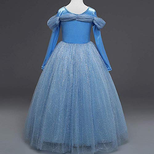 IMEKIS Ragazza Cenerentola Abito Principessa Vestire Cosplay Tutu Farfalla Vestito Halloween Festa di Carnevale Manica Lunga Tulle Pizzo Gonna Compleanno Abito da Ballo con Accessori Set Blu 5-6 Anni