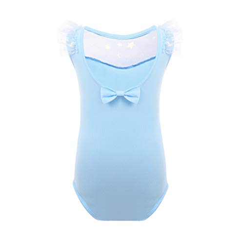IMEKIS Vestito da Danza Classica per Ragazze con Maniche a Mosca Costume Balletto Leotard Stampa Stelle Lucide Body Gonna Tutu Ruffle Ginnastica Dancewear Blu 7-8 Anni