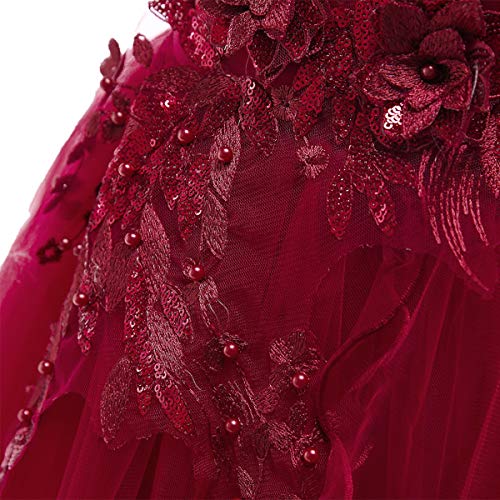 IMEKIS Vestito a Fiori per Ragazze Senza Maniche Spalle Scoperte Ruffle Tulle Abito da Damigella d'Onore Elegante Compleanno Abito da Spettacolo Principessa Abito da Ballo Lungo Rosso 11-12 Anni