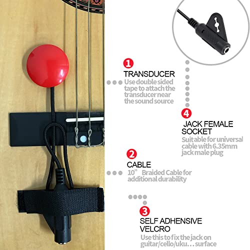 Questo microfono per chitarra pick up funziona contattando direttamente la sorgente sonora. Essere in grado di eliminare quasi tutte le interferenze audio esterne e non essere influenzato da riflessioni suono da oggetti vicini.