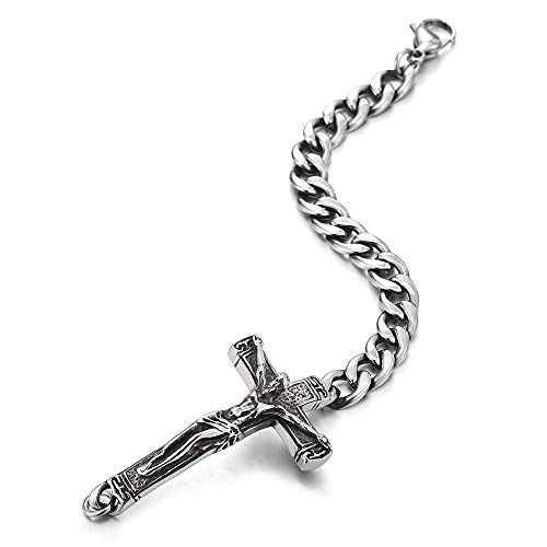 IMETACLII Uomo Acciaio Inossidabile Annata Gesù Cristo Crocifisso Lato Orizzontale Laterale Croce Bracciale con Barbozzale