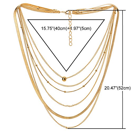 IMETACLII Colore Oro Statement Dichiarazione Collana Cascata Multi Strati Lunga Catena Perline Charms Pendente, Abito da Sera