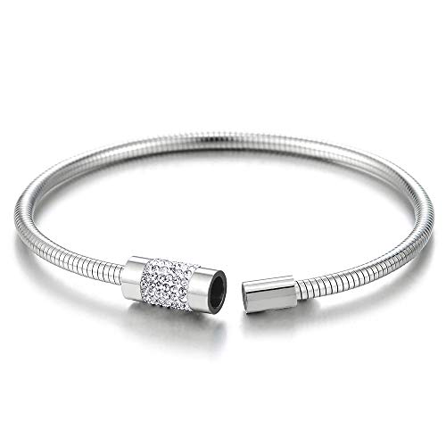 IMETACLII Donna Ragazze Unico Acciaio Inossidabile Sottile Bracciale con Zirconi Charm, Braccialetto Fascino Chiusura Magnetica