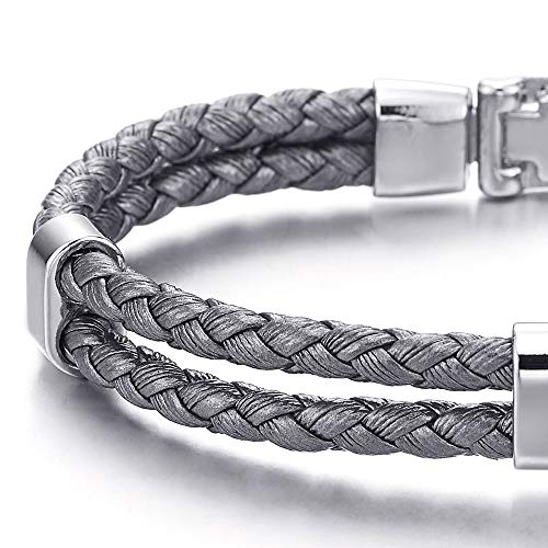 IMETACLII Donna Uomo Due Ranghi Grigio Pelle Intrecciata Braccialetto, Cuoio Fascia di Polso, Bracciali Avvolgere