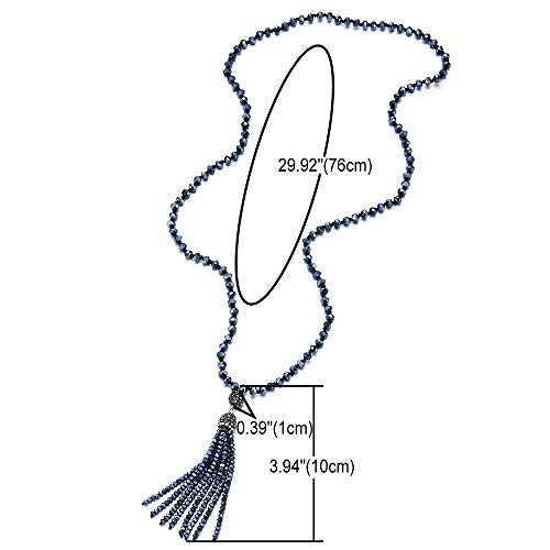 IMETACLII Statement Collana Y-Forma Frangia Nappa Pendente Grigio Scuro Blu Cristallo Perle Lunga Catena, Abito da Sera