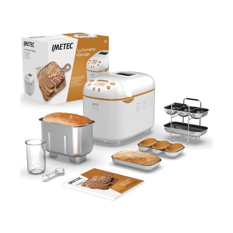 Imetec La Forneria + Zeroglu per pane italiano fatto in casa buono, fragrante e croccante. Colore del prodotto: Ocra, Bianco, Massimo peso del pane: 1 kg, peso minimo pane: 80 g. Potenza: 920 W, Tensione di ingresso AC: 230 V, Frequenza di ingresso AC: 50 Hz. Larghezza: 275 mm, Profondità: 430 mm, Altezza: 315 mm. Larghezza imballo: 320 mm, Profondità imballo: 424 mm, Altezza imballo: 400 mm