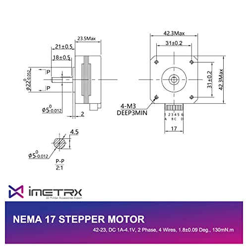 iMetrx Il motore passo-passo Nema 17 ha una torgue elevata e una potenza più forte (20-25% superiore ai motori normali) e un valore di resistenza inferiore per ridurre il riscaldamento.
