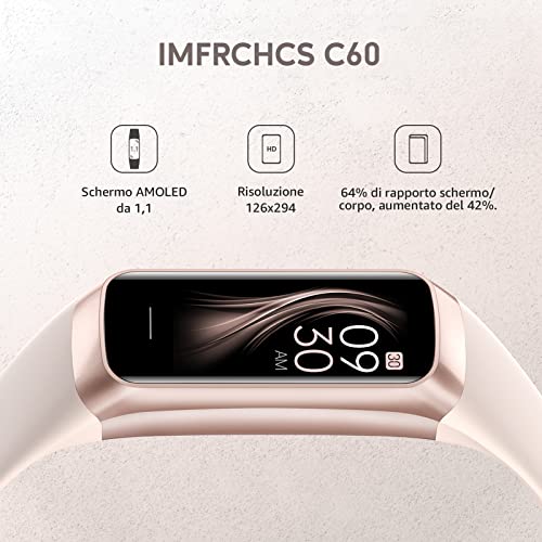IMFRCHCS Smartwatch Uomo Donna, Schermo AMOLED 1.10'', con Saturimetro, Contapassi, Cardiofrequenzimetro da polso, Orologio Fitness con Impermeabile 5 ATM per Android iOS, Rosa, standard, C60