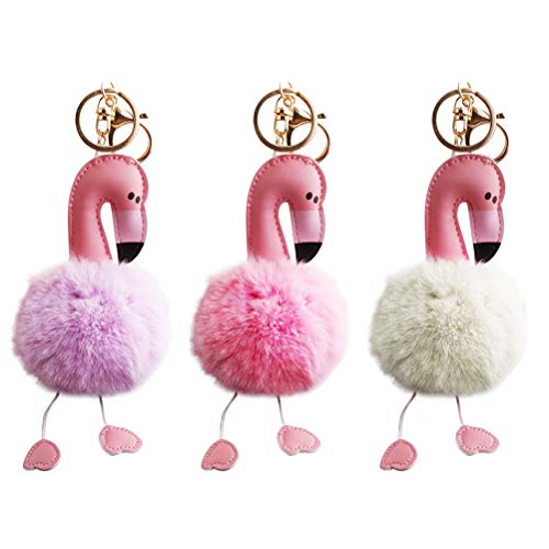 IMIKEYA 3 Pezzi Portachiavi lanuginoso Peluche Animale Portachiavi Portachiavi Fenicottero Appeso Decorazione (Bianco/Rosa/Viola)