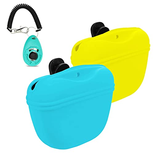 IMILIFE 2 Sacchetto per Cani in Silicone, Borsa Premietti per Cani Addestramento 2 Pezzi Silicone con clicker, Porta premietti per Cani per Cani crocchette Cani