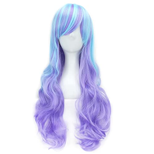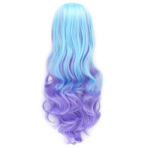 IMISSU 26'' Parrucca per capelli lunghi naturali con frangetta Parrucche colorate per feste in costume di Halloween per le donne (Blu Viola)