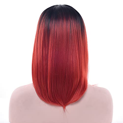 IMISSU Parrucche per capelli corti Parrucca per cosplay Colore Ombre Parrucche per feste in costume di Halloween per donne (Nero Ombre Rosso)
